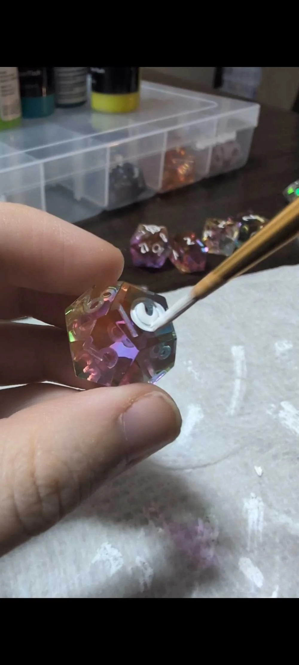 We meticulously hand-paint each number and clean off any excess paint as we go. Once fully numbered and dry, we do a final cleaning before the dice are photographed and ready for sale!